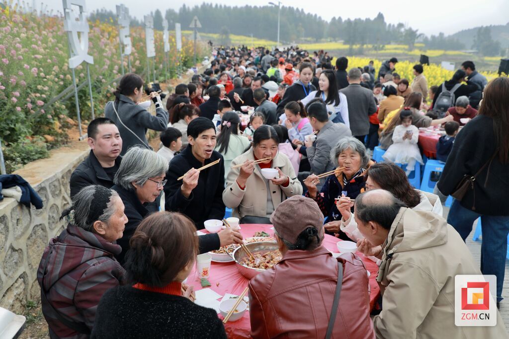 最具烟火气的当属“花田飨宴·千人同春”千人坝坝宴,本土特色美食香气四溢,游客们围坐一桌,尽情品尝春日的味道。据该镇负责人介绍,该镇负责人介绍:“整个活动前后,吸引各地游客4.5万余人次,带动餐饮、特色小吃、农特产品销售收入达到38万余元。”成为荣县淘“春金”的先锋。