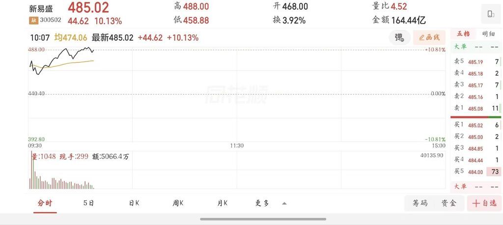 新易盛股价分时图 图源同花顺