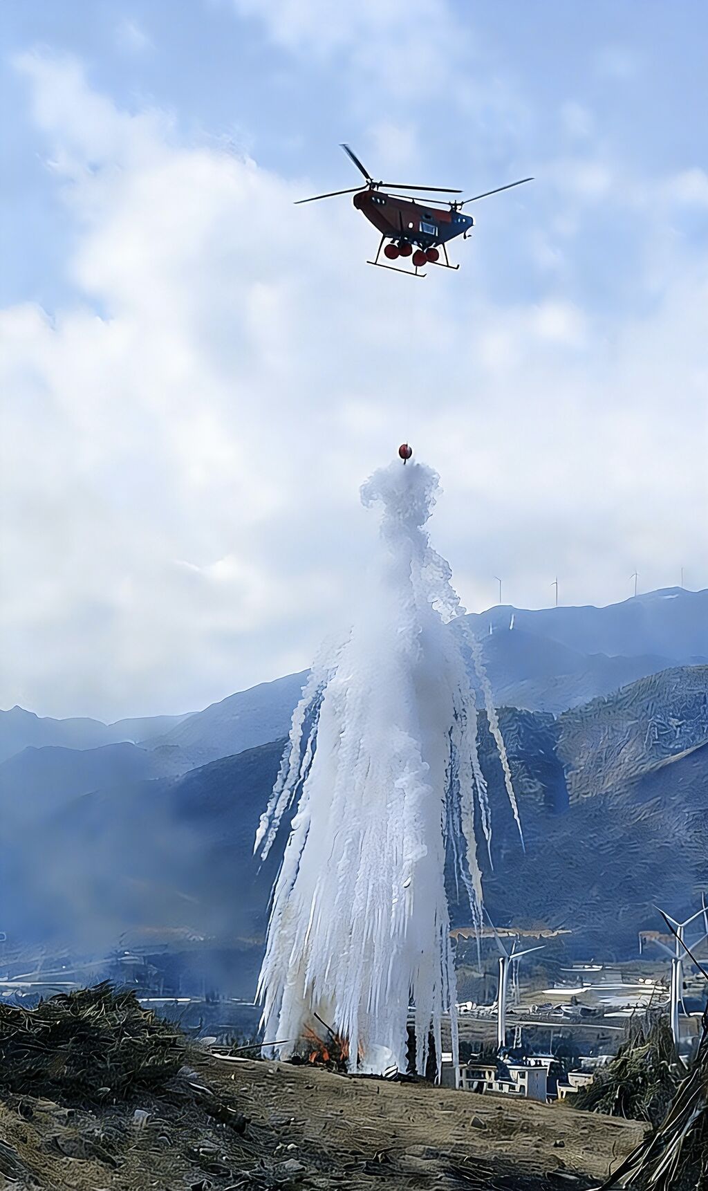 四川责航飞机制造有限责任公司生产的直升机在参与防灭火演练。受访者供图