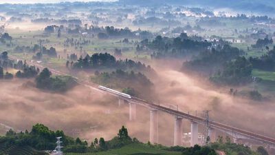 平流雾+春日晨光+层叠茶园+高铁穿行+绝佳机位 = 雅安名山千里江山图