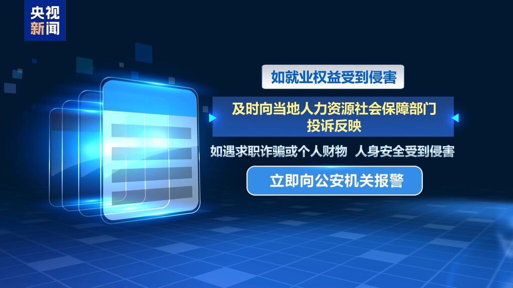 如就业权益受到侵害,及时向当地人力资源社会保障部门投诉反映。如遇求职诈骗或个人财物、人身安全受到侵害,立即向公安机关报警。