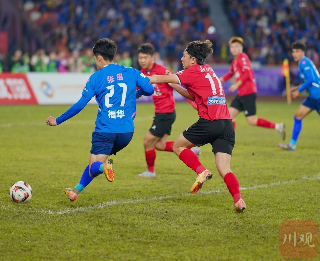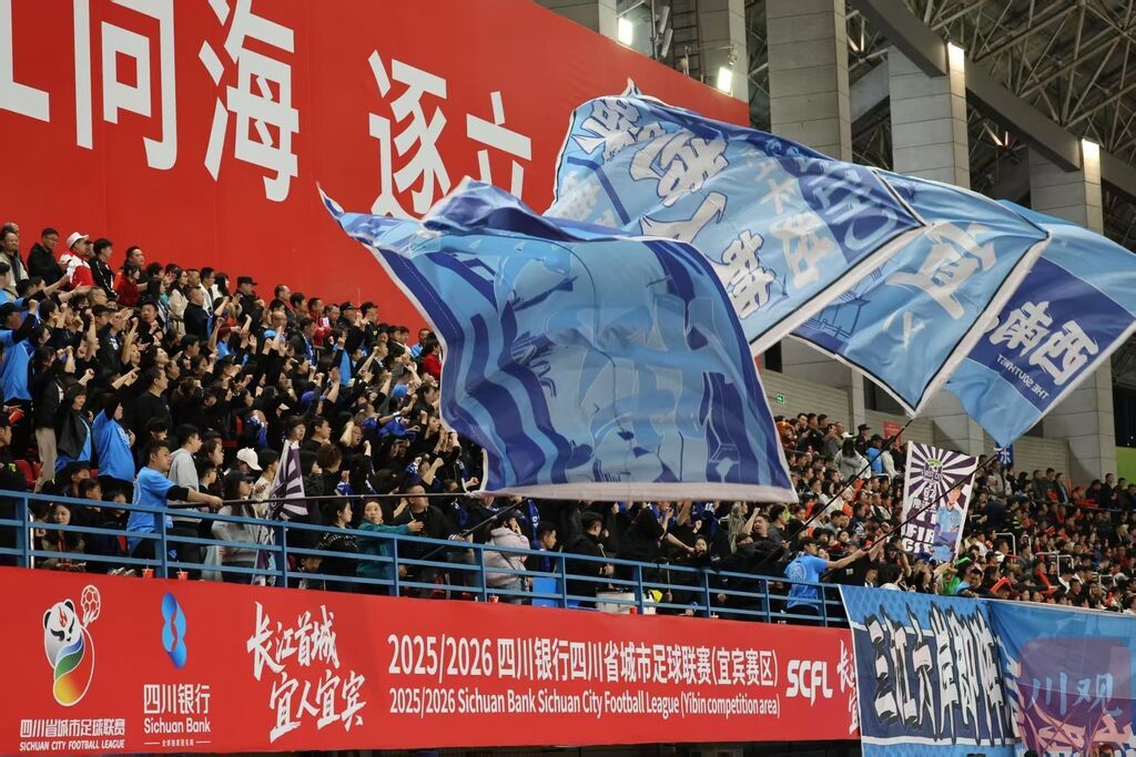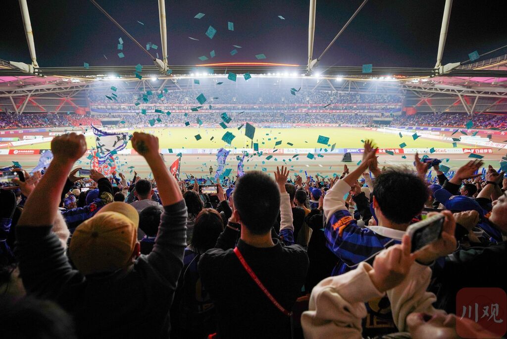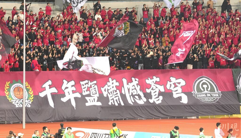 赛场之上,球员们攻防转换间尽显竞技风采,每一次抢断、传球、射门都牵动人心。赛场之外,各地球迷满怀热忱奔赴而来,摇旗呐喊、齐声助威,红色的呐喊浪潮与绿色的赛场相互映衬,热情与欢呼贯穿全场,成为川超赛场最动人的“第十二人”,为赛事注入满满能量。
