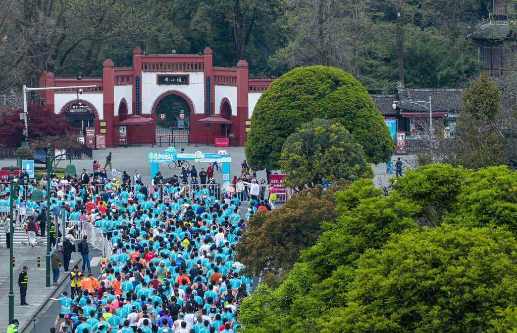 3月22日,2026成都世遗马拉松在都江堰市鸣枪起跑。来自国内及全球37个国家和地区的3.5万名选手齐聚,以奔跑的姿态拥抱春天。