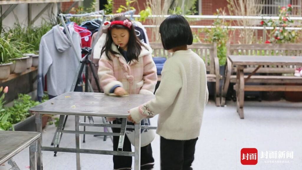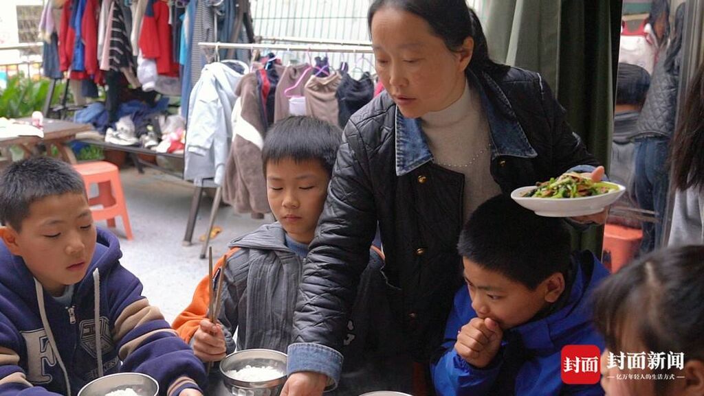 清晨五点半,果爸准时起床做饭,六点四十叫醒孩子,七点开饭,七点半送孩子们前往学校,果爸同步去上班。送走孩子后,家里归于安静,张蓉留守家中,洗衣、打扫、整理内务,一刻不停歇。下午三点,她着手准备晚餐,确保孩子们放学回家就能吃上热乎饭。傍晚六点,果爸带着幼儿园、小学、中学的孩子们归家,二楼阳台再次热闹起来,直到晚上九点多洗漱完毕,十点熄灯。