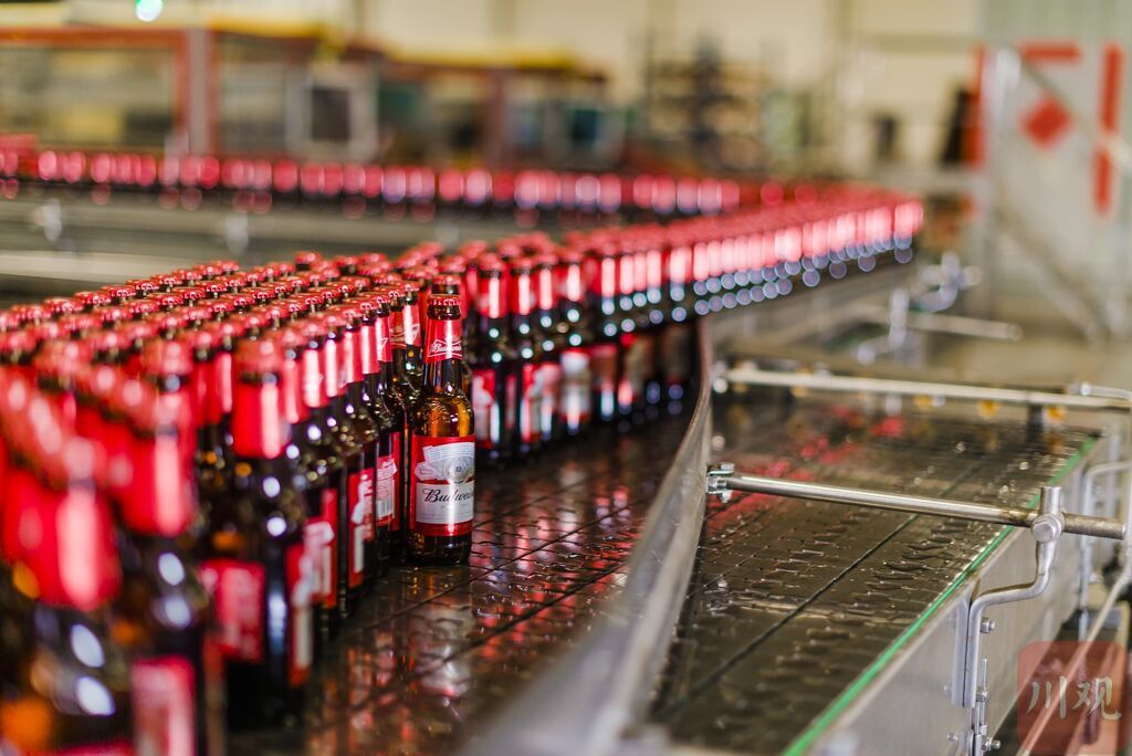 在位于资阳的百威(四川)啤酒有限公司,一条条智能啤酒生产线高速运行——德国进口设备以每小时4万到9万瓶的速度运转,从洗瓶、灌装到压盖、贴标,一气呵成且无需人工干预。传送带上的福佳白啤酒瓶列队向前,这条投用一年多的生产线,为全球超高端啤酒打上了“资阳造”的标签。