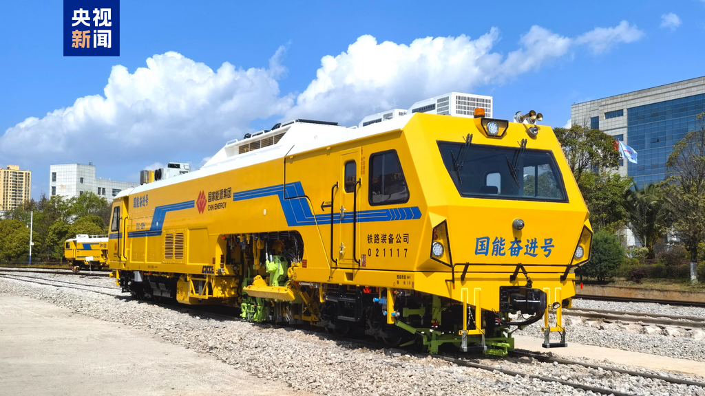 ·25日,我国首台铁路隧道双动力智能捣固车在云南昆明下线。
