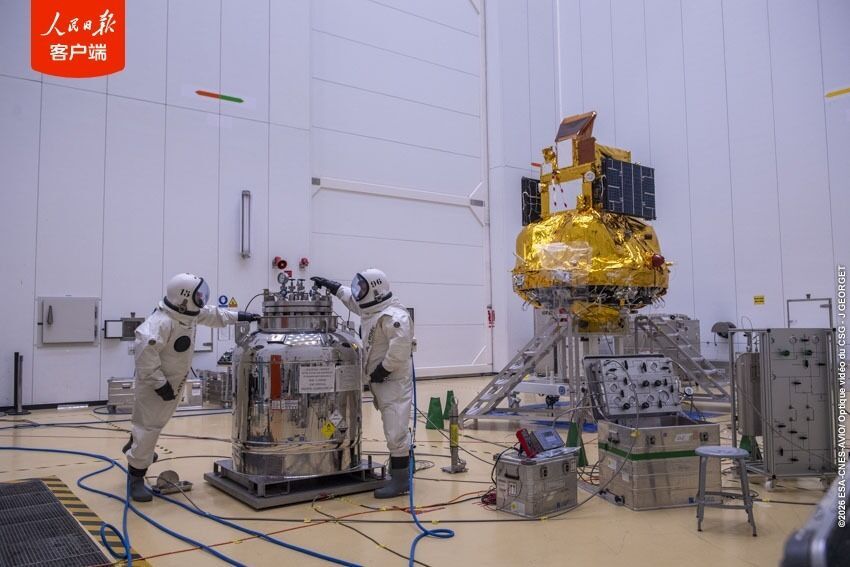 抵达发射场后,中欧联合试验队立即投入紧张的测试工作。测试结果显示,卫星各系统状态稳定,性能符合预期。卫星与运载火箭完成对接,标志着卫星发射前准备均已就绪。