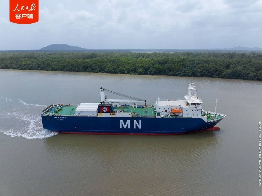 “微笑卫星”任务自2025年10月28日通过中欧联合出厂评审后,全面进入发射实施阶段。2025年11月底,卫星所需推进剂从上海启运,于2026年2月初运抵库鲁码头并转运至发射场。2026年2月11日,正样星及地检设备从位于荷兰的欧洲航天技术中心出发,从阿姆斯特丹码头搭乘“蜂鸟号”货轮横穿大西洋,于2026年2月26日抵达库鲁码头并顺利转运至发射场。