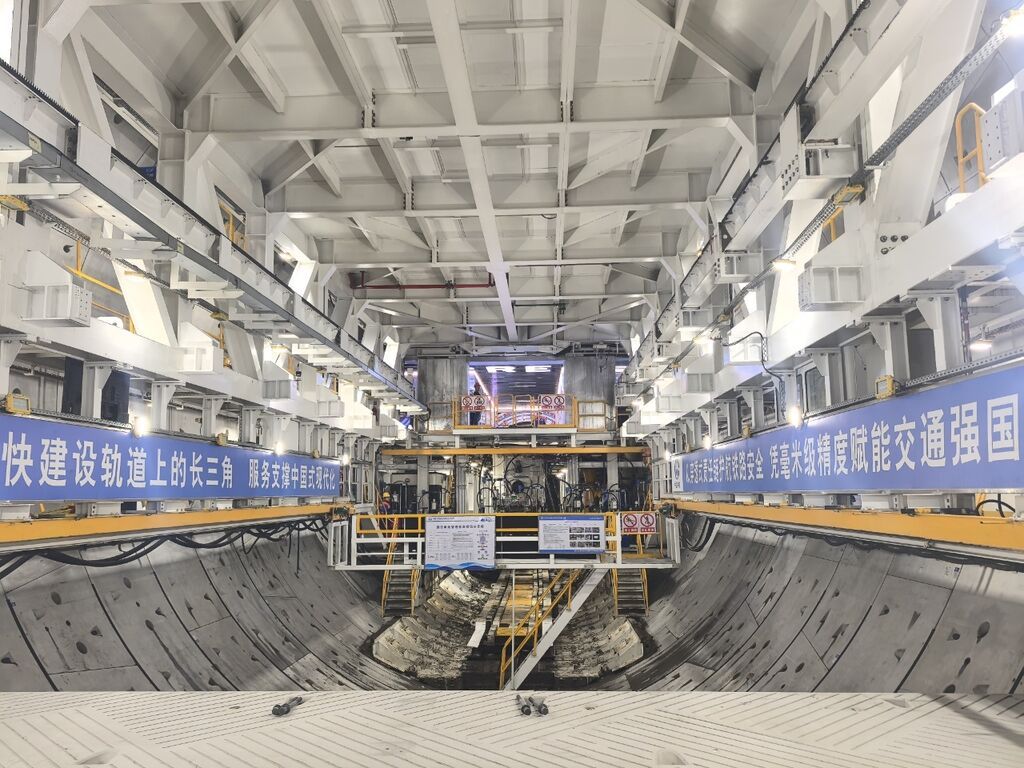 3月29日,由我国自主研制的世界最大直径高铁盾构机“领航号”顺利完成长江水下段11.18千米的施工任务。自2024年4月29日从上海市崇明岛始发以来,“领航号”历经23个月的安全掘进,越过长江南岸大堤,顺利抵达江苏太仓,成功“上岸”,距离精准抵达2号竖井“检修驿站”更进一步。