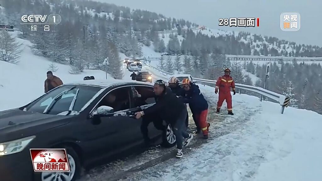 28日,山西五台山景区突降大雪,降雪一直持续到晚上八点多,山上积雪最厚处超过5厘米。导致部分游客和车辆被困。当地消防立即展开救援,经过近1个小时救援,共帮助30辆车脱困,疏散近百名被困游客。