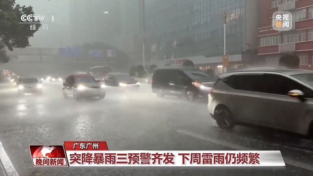 广东广州:突降暴雨三预警齐发 下周雷雨仍频繁
