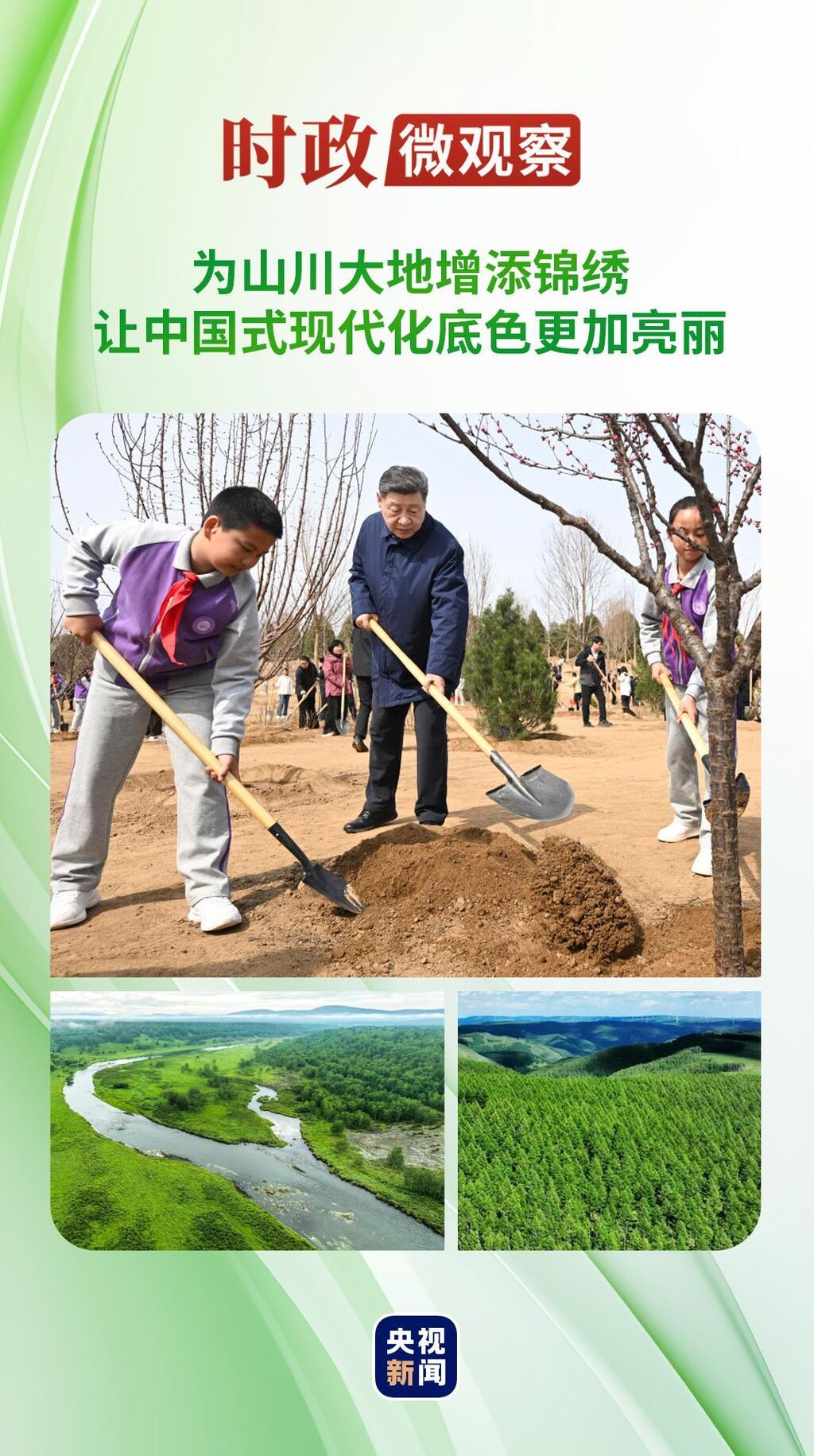 “今年是‘十五五’开局之年,也是全民义务植树运动开展45周年。”习近平总书记同在场的干部群众亲切交谈时强调,新形势下推进国土绿化,要更加注重提质、兴业、利民,实现种与管共抓、生态与产业共促、人与自然共生。