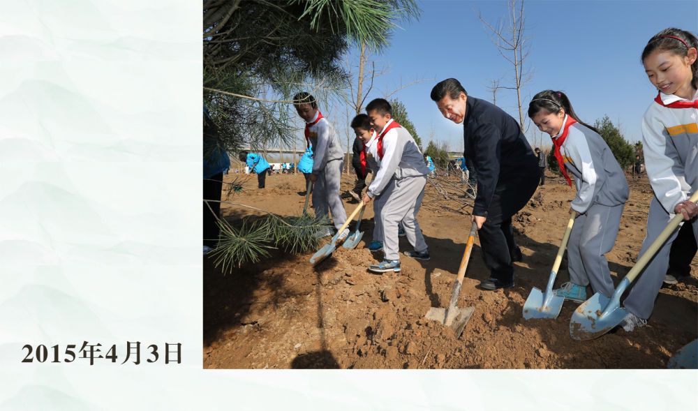 率先垂范、身体力行。此后13个春天,习近平总书记坚持同干部群众一起参加义务植树活动。永定河畔的滨水绿廊,城市副中心的绿心公园,产业疏解后改造的开放绿地,环境整治后打造的生态空间,都曾见证总书记躬身植绿的身影。