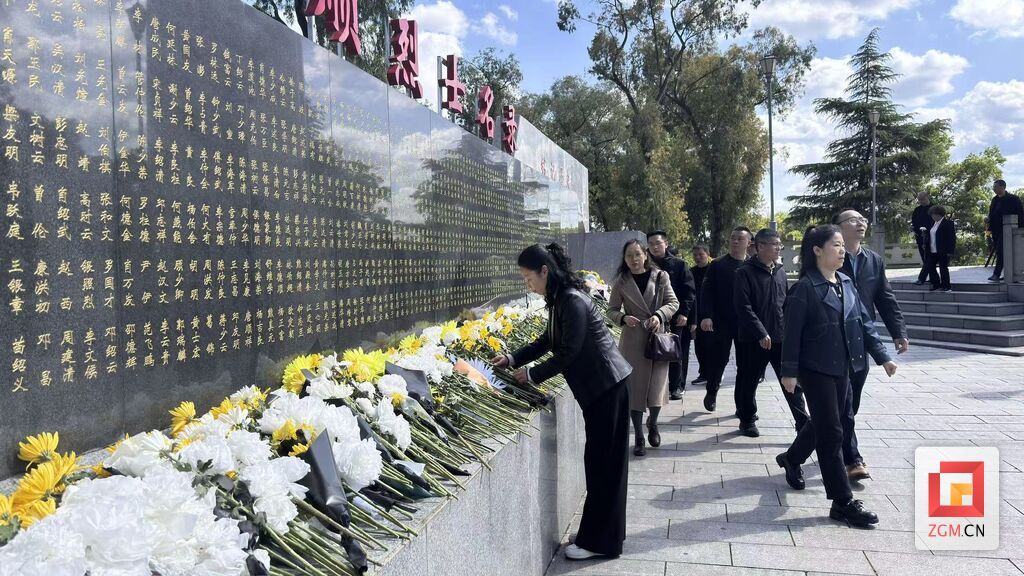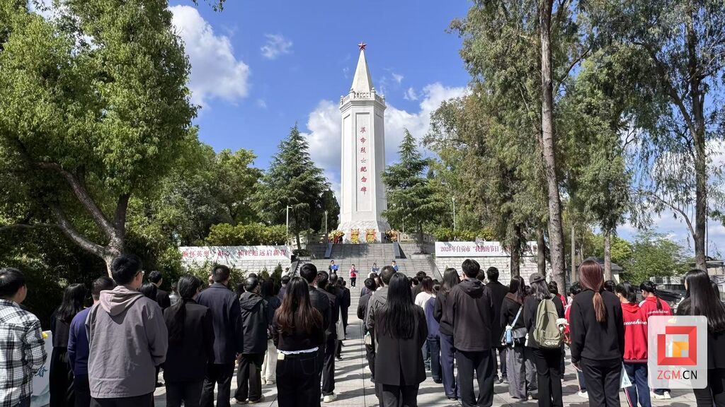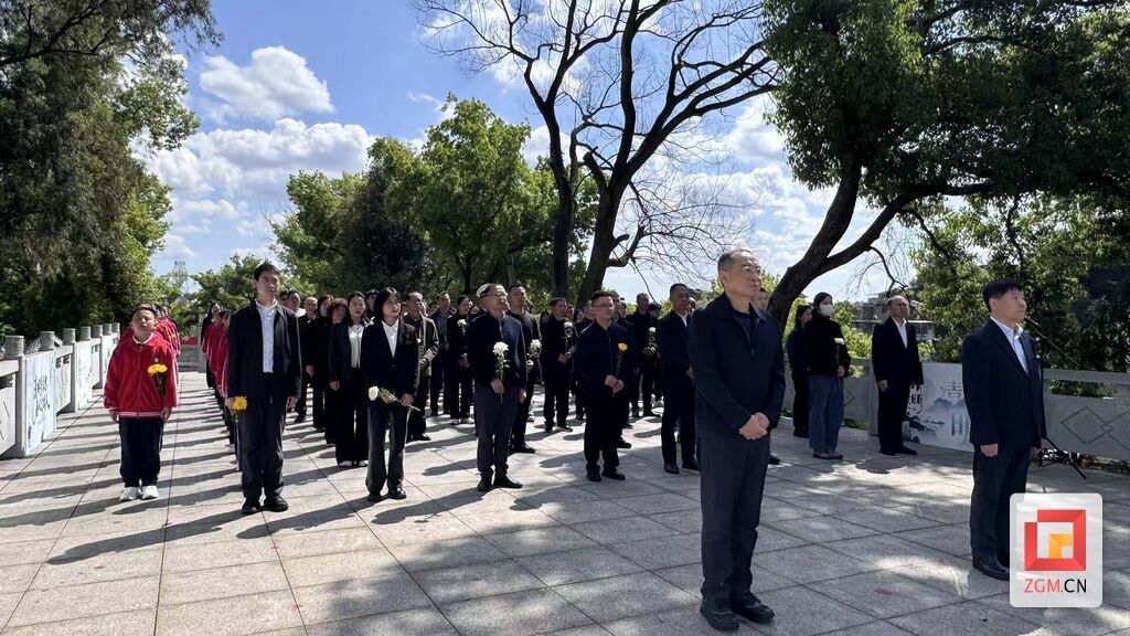 在向烈士敬献花篮仪式上,中共自贡市委宣传部、市退役军人事务局分管负责人整理了花篮缎带,全体人员向烈士纪念碑行鞠躬礼,并瞻仰烈士纪念碑,敬献手花,表达了对英烈的无限哀思和崇高敬意。