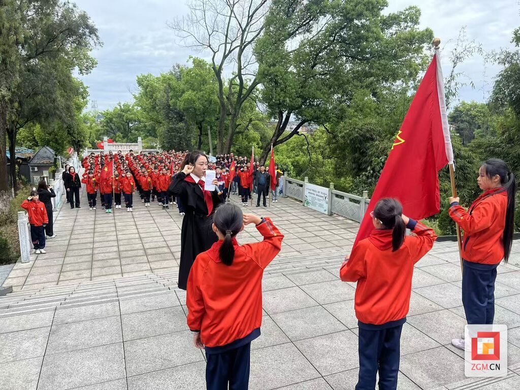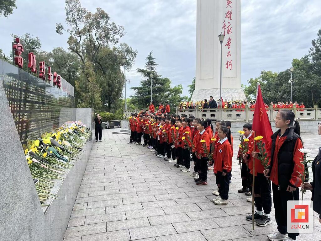 思政课结束后,学生代表分享了感悟与思考,表达了新时代少年继承先烈遗志、努力学习、报效祖国的坚定决心。全体少先队员庄严呼号,铿锵有力的誓言在烈士陵园上空回荡,彰显着队员们传承红色薪火、争做时代新人的信念。随后,学生代表缓步走向烈士纪念碑,敬献花篮,以鲜花寄哀思,向英烈致以最崇高的敬意。