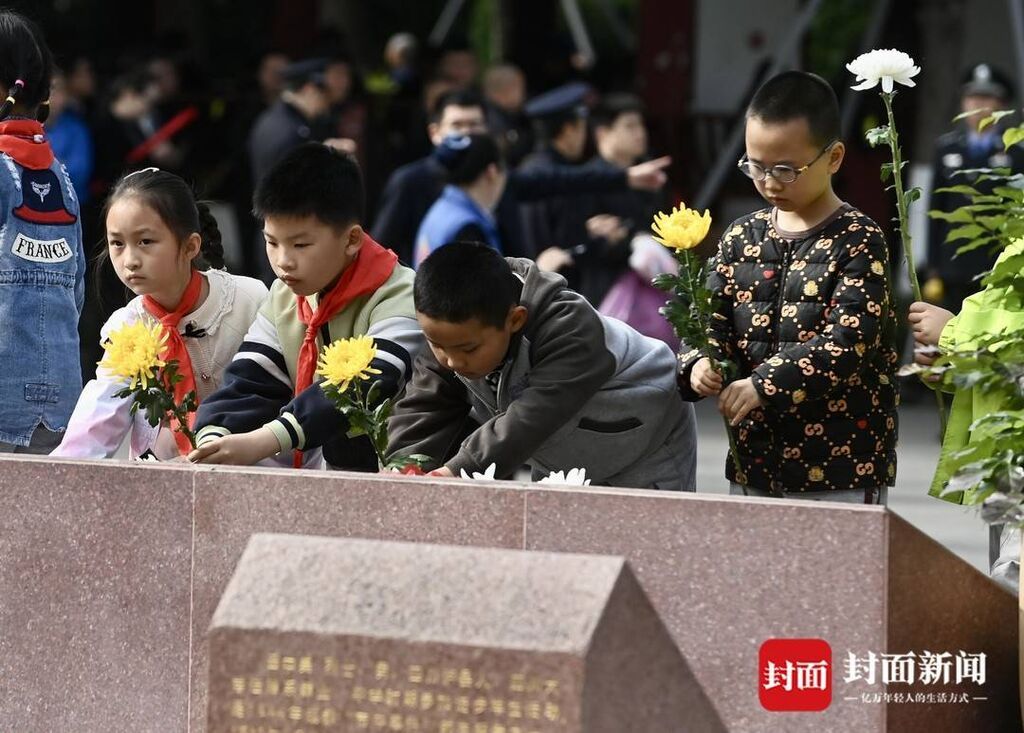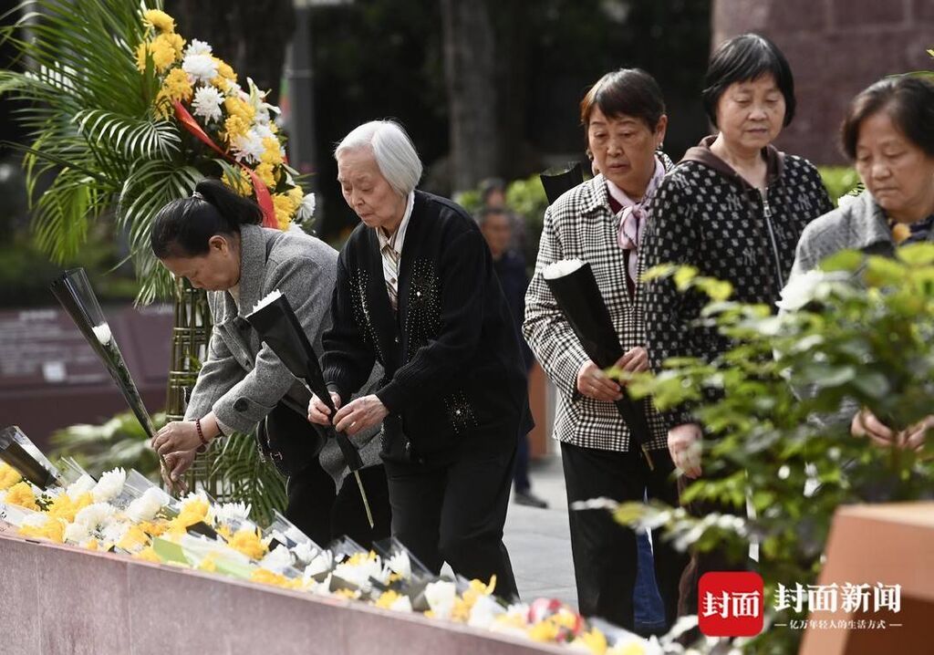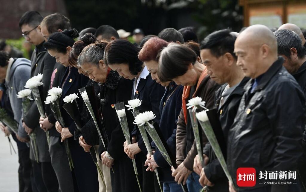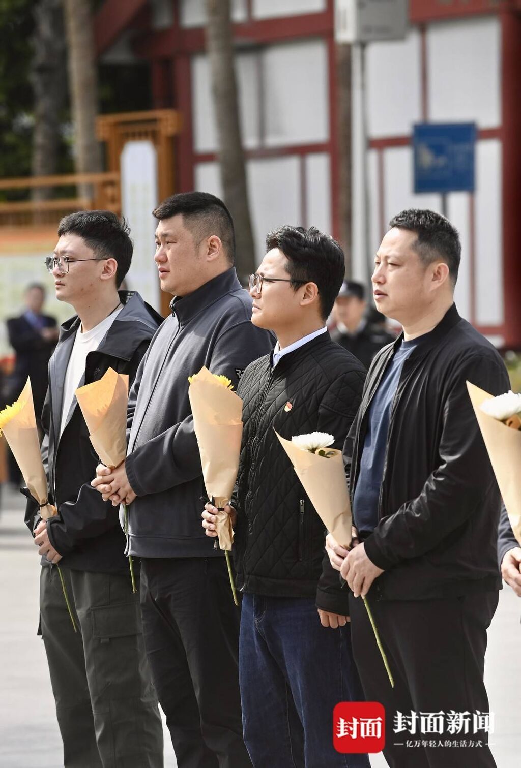 4月1日,清明节将至。成都文化公园十二桥烈士墓前,各界人士来到这里手捧鲜花缅怀先烈。赓续红色血脉,传承革命精神。