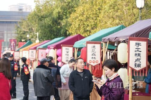 市集业态丰富且贴近民生,涵盖特色美食、国风文创、休闲茶饮、互动体验等多个领域。内江本土小吃、传统点心热气腾腾,精致文创、手工饰品琳琅满目,汉服租赁、古风摄影、鱼灯DIY等体验项目备受青睐。统一规范的摊位设置、浓厚的主题氛围,既降低了商家参与成本,也提升了市民游玩体验。结合春节、元宵等节点推出的乐舞表演、互动巡游等活动,持续聚集人气、延长停留时间、带动多元消费。