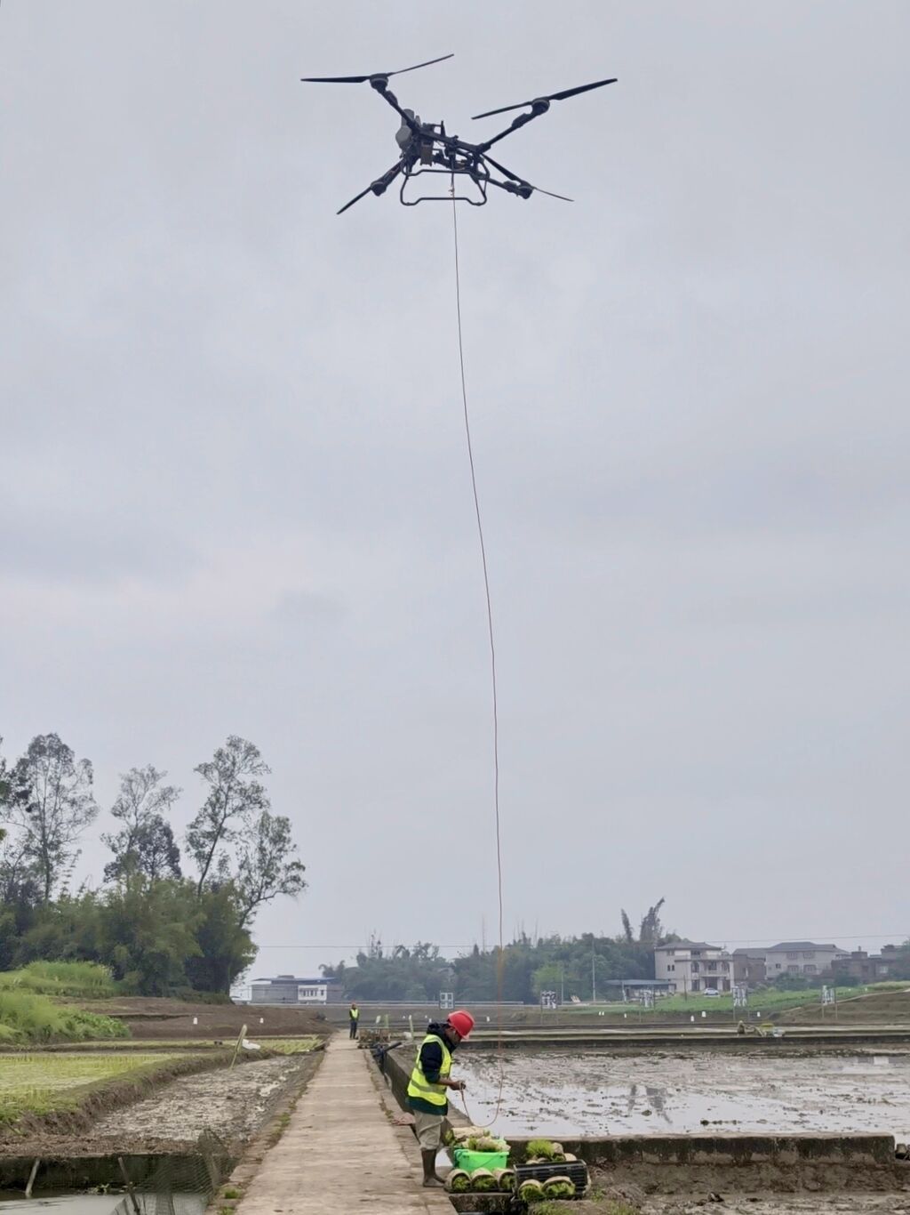 “周边有些大户用‘天车’运秧,一台十几万元,我一个刚毕业的,哪有那么多钱投?”孙雪峰苦笑道。正当他愁得睡不着觉时,转机来了——四川省农业科学院作物所的朱从桦博士下乡指导,一眼瞅见合作社仓库里那台新购置的农用无人机,一拍大腿:“哎呀!这个就能用于运秧嘛!”