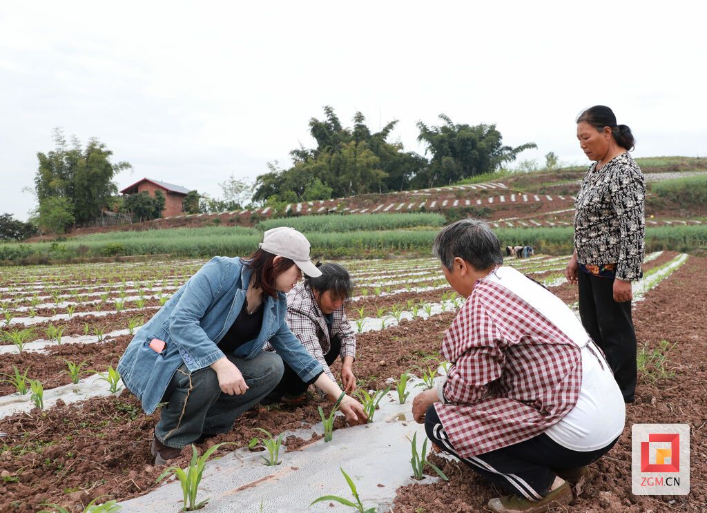 “大家注意,玉米出苗期的虫害主要是地老虎、蛴螬、金针虫这些地下害虫,它们咬断根茎,苗子就会发黄、枯死,一拔就断,这个阶段的病虫害管理非常关键。”荣县巾帼科技特派员粮油团农业专家邓榆千蹲在地头,拔起一株发黄的苗子,向围拢过来的农户们现场讲解。