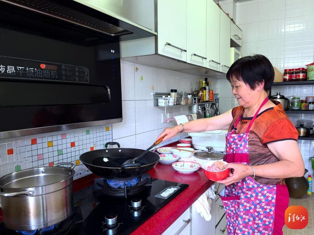 叶红群婆婆在厨房烹饪美食分享给张婆婆