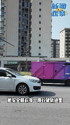 记者驾车跟随无人配送车一路行驶,车身配备的高清摄像头、激光雷达等多维智能感知设备,再加上有L4级自动驾驶技术与城市智慧道路系统的加持,无人配送车实现了“眼观六路、耳听八方”,不仅能灵活变道、精准识别红绿灯与车道线,遇障碍物自动刹车避让,还能在“看到”行人穿越马路时提前减速礼让;同时,它会根据不同路况“喊出”相应安全提示语……这辆既智能又守规的无人配送车,一路上吸引不少市民驻足拍照。