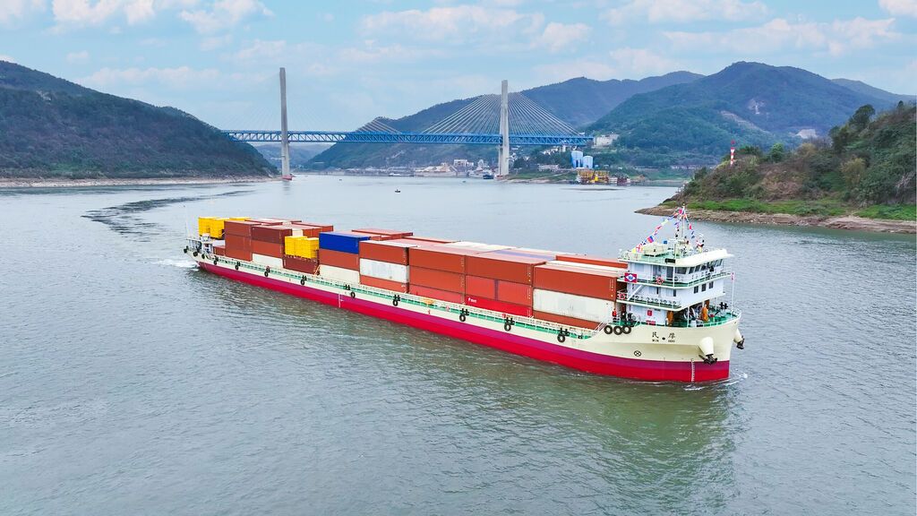 成渝“五定”公水联运班车由民生物流四川有限公司开行,于2023年开始试运营,目前已进入常态化运行阶段。仅2025年,就开行班车1887趟次、运输3063标箱、公水联运整车超1.83万台。