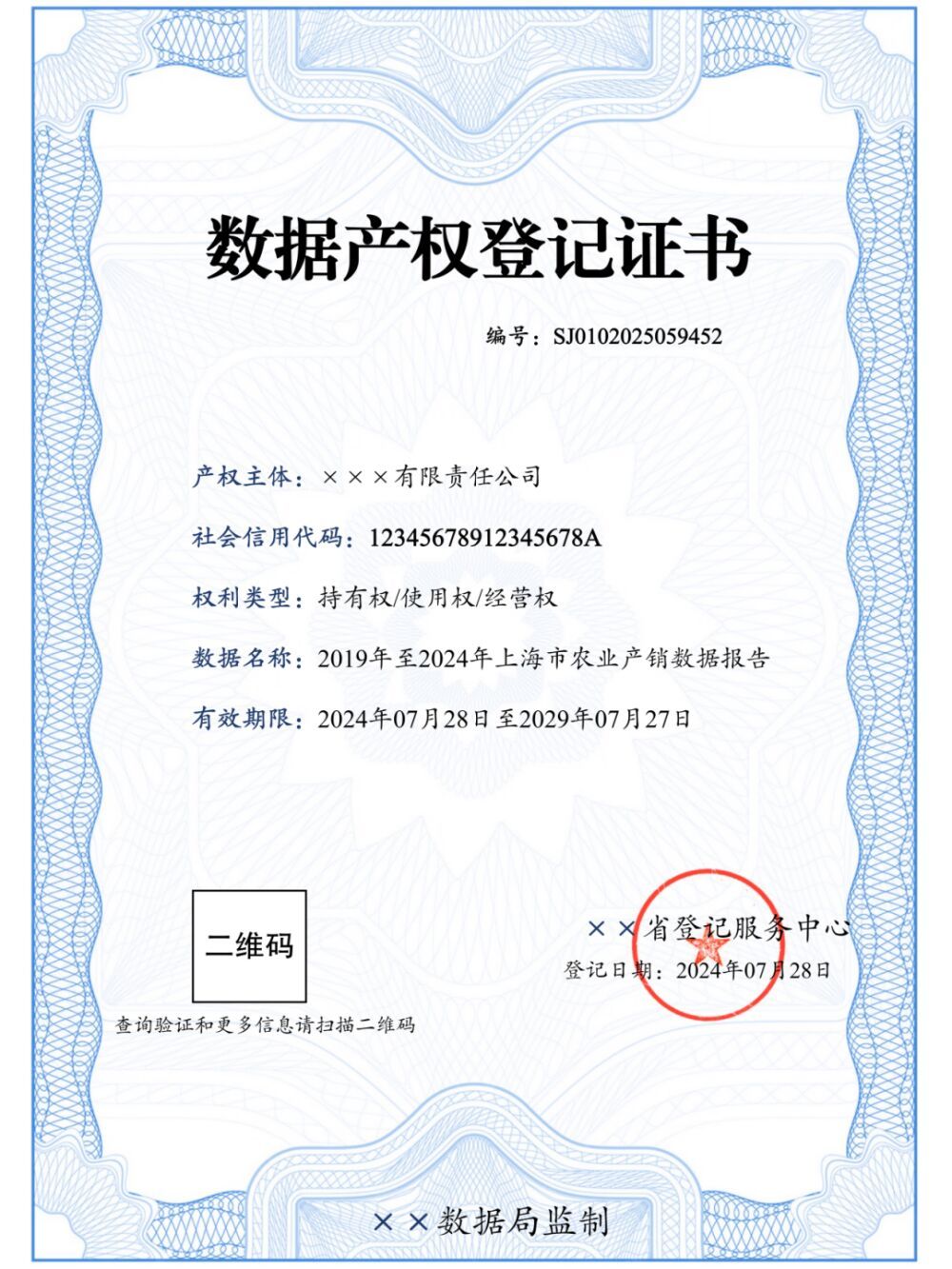 数据产权登记凭证样例