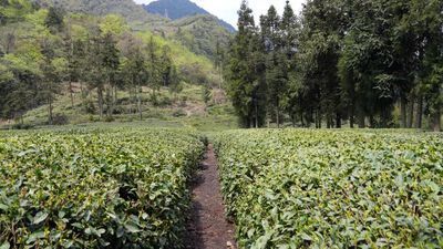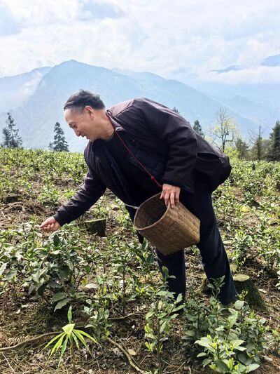 “我在前年才将这块地里的杉树砍掉种上了茶树,今年是头一回采收。茶园总共约五亩,现在采摘的是第二茬春茶,每斤成品茶能卖七八百块。”矮小的茶苗尚未长高,李应采茶时需将腰弯得更低一些。在稀疏的茶树间,被砍掉的杉树树桩直愣愣地杵着,它们见证了这片土地由杉树林向茶园的转变。