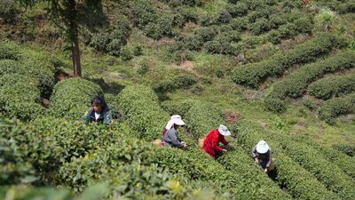 “以前全靠手工制茶,现在是机器配合人工,效率高多了,一个人一天就能做出三四十斤干茶。”几十年与茶叶为伴,张明强的双手早已布满层层老茧,茶渍深深浸在纹路里。“在茶厂上班,一年能挣六七万元,效益好的时候能有十几万。” 从山路崎岖到道路畅通,从手工做茶到机械化生产,几十年守着茶山,张明强也亲眼见证了这片茶园的变迁与发展。