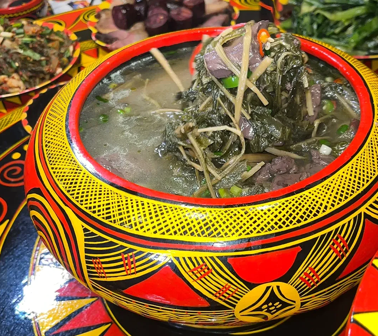 中午:享用正宗彝家宴,大块坨坨肉肥瘦相间,肉香浓郁,是彝族招待贵客的招牌菜;酸菜洋芋鸡酸辣开胃,鸡肉鲜嫩入味;苦荞饼香甜软糯,饱含粗粮醇香;还有连渣菜清爽解腻,每一道菜都尽显彝族饮食的豪迈与质朴。