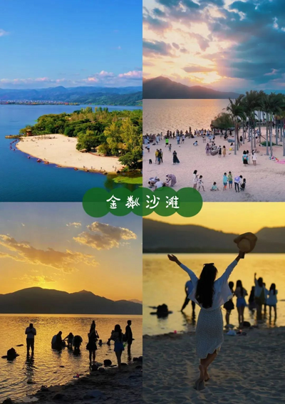 下午:打卡金鳞沙滩,被誉为邛海“小三亚”,细腻白沙搭配湛蓝湖水,赤脚漫步沙滩,看夕阳洒在湖面,泛起橘子海般的波光,浪漫值拉满。闲暇时还能在湖边小憩,吹着海风,享受凉山独有的慢时光。