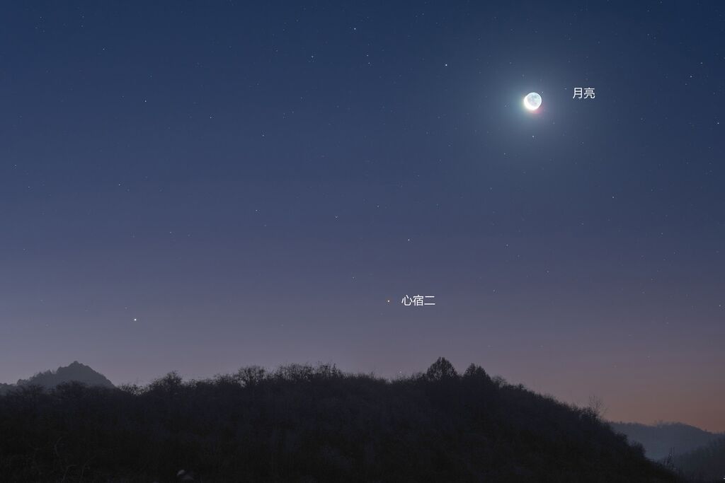 中国天文学会会员、天文科普专家修立鹏介绍,4月6日23时30分左右,心宿二将会和一轮亏凸月一起从东南方向升起,随着时间的推移,7日凌晨4时前后,心宿二与亏凸月完成相合“任务”,此时,它们位于南方夜空。