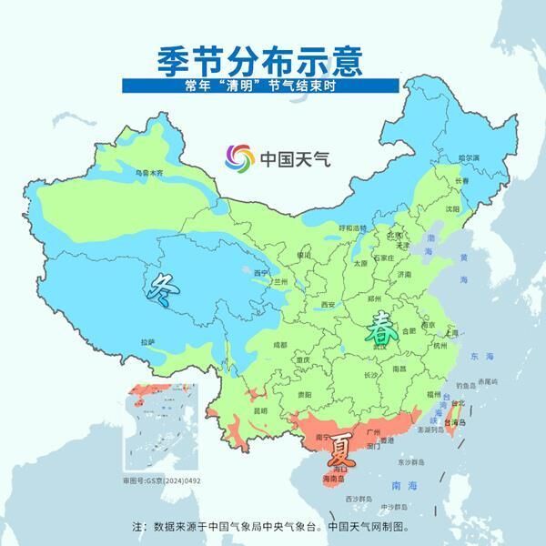 常年清明节气结束时,春季前沿将推进到内蒙古东南部、吉林西部一带,乌鲁木齐、呼和浩特、沈阳、长春通常都是在清明期间入春。还没入春的地方,让我们静待春天的到来吧!