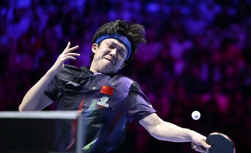 4月5日,中国选手王楚钦在比赛中回球。 新华社记者 于洋 摄
