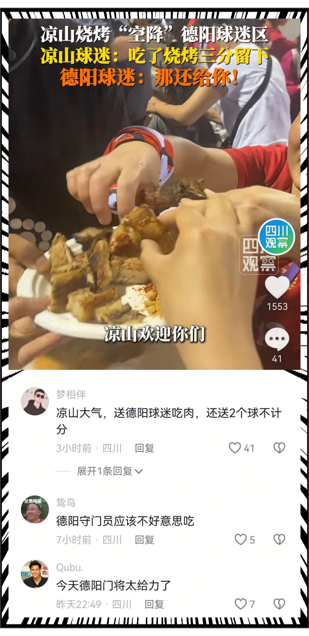 赛前凉山球迷送的烤肉