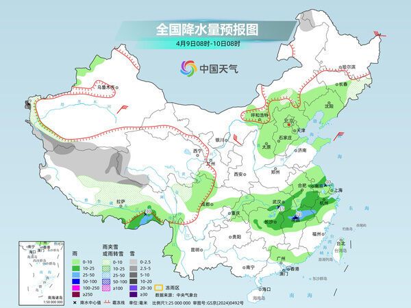 未来三天,南方仍将处多雨模式,降雨核心区有所北抬,长江中下游地区需警惕强降雨可能引发的泥石流、山体滑坡等次生灾害。预计4月10至12日和13日至15日,还有两次较强降水天气过程将影响江南、贵州、重庆等地,需保持关注。
