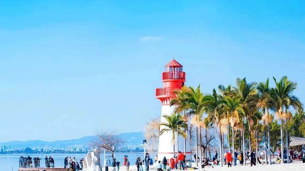 金粼沙滩上,1分钟的阳光,足够让白沙的温度上升,足够让湖面的波光闪烁,足够让一位北方来的游客脱掉羽绒服——这是西昌冬天独有的“凡尔赛”。