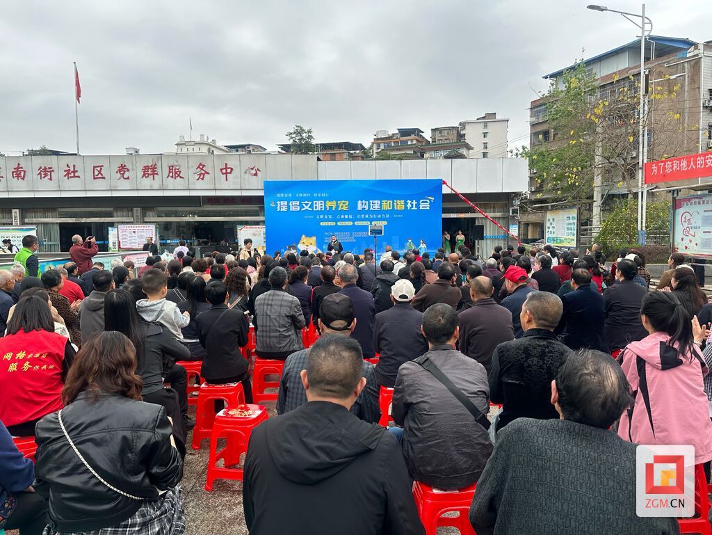 伴着悠扬的旋律,文艺表演正式拉开帷幕。舞蹈、文明养宠快板等节目轮番登场,用生动的表演传递文明新风,其中文明养宠快板将遛狗牵绳、及时清理犬便等文明养犬知识融入朗朗上口的台词,既贴合主题又通俗易懂,现场掌声、欢笑声不断,为活动营造了热烈欢快的氛围。