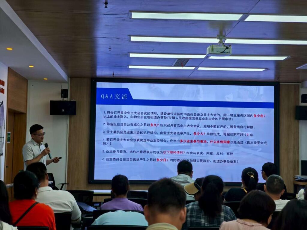 2025年10月17日下午,第二场培训聚焦“业委会成立流程详解”,30余名业委会筹委会成员、骨干及工作人员参加。律师从业委会成立的法定条件到具体操作程序,从筹备组组建规范到业主身份确认标准,层层拆解。