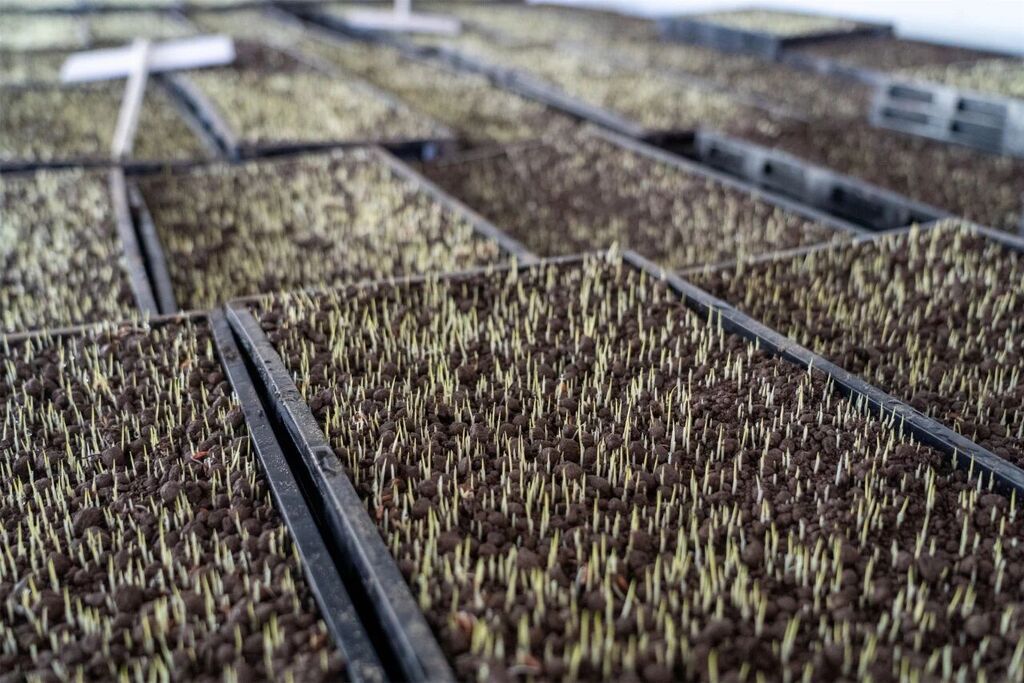 面对难题,周建伟自有奇招:将24米长的移动传送带直接架在报废的收割机底盘上,造出4台能适应复杂地形的“移动天车”。这些“大家伙”可以在不同田块间移动,6个人配合操作,半小时就能摆满一亩田的秧盘,效率成倍提升。