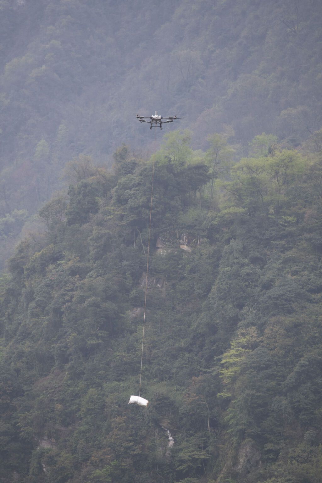在峨边彝族自治县杨河乡高湾村,竹海连绵起伏,一台大型无人机从山脚起飞,飞至山顶后下降,吊起竹笋后稳稳运回,全程仅需一分半钟。“以前运笋靠人背马驮,来回要花费几个小时,现在几分钟就运下来了,效率太高了。”无人机运输强大的吊运能力让笋农们兴奋不已。