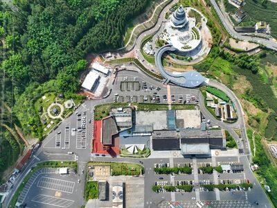 走进服务区,川藏公路馆内陈列着老照片、公路装备,讲述着“两路”精神的传承;熊猫广场上,熊猫造型的雕塑与文创产品随处可见;“鲟龙虹桥”人行步道连接两岸,既是游客通行的通道,更是俯瞰服务区全景的打卡点。