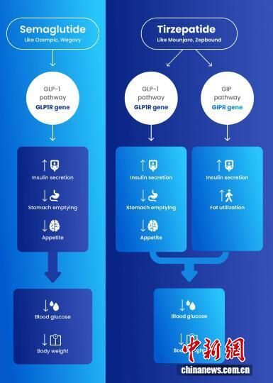 该论文介绍,GLP1受体激动剂,包括司美格鲁肽(商品名“诺和泰”Ozempic)和替尔泊肽(商品名“穆峰达”Mounjaro),是模拟天然肠道激素的药物。这些药物有助于调节食欲、胰岛素释放和消化,已广泛用于治疗肥胖。不过,该药物治疗过程中,为何有些人减重比其他人多、为何有人会出现恶心和呕吐等副作用,机制尚不明确。