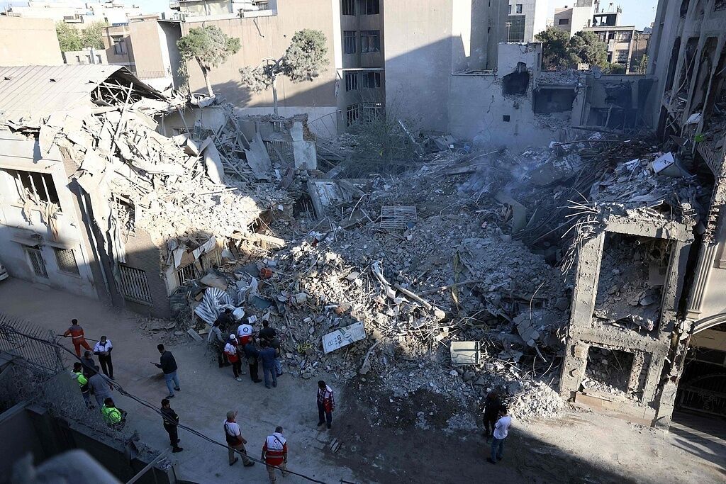 △当地时间4月7日,伊朗民众聚集在伊朗德黑兰一处美以空袭现场