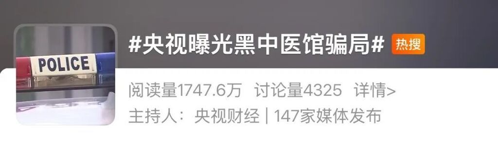 近日,#央视曝光黑中医馆骗局#登上微博热搜。