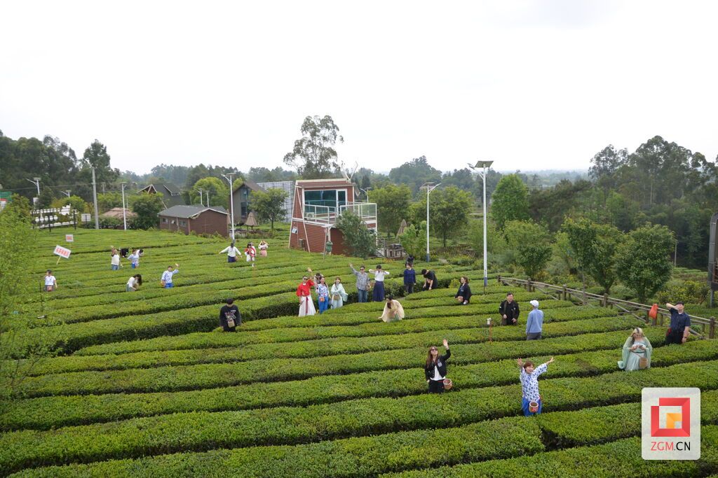 随后,交流团来到“四川十大最美茶乡”来牟镇一洞桥村茶叶基地,青年们腰挎竹篓,化身“采茶人”,在茶农指导下学习“一芽一叶”的采摘要领,“原来采茶不能用指甲掐,要靠巧劲提!”一位初次体验的台湾姑娘兴奋地向同伴展示自己的“战利品”。大家纷纷拍照留念,在茶香与绿意中沉浸式感受茶园风光;随后众人带着鲜叶前往制茶点,观摩手工制茶工序,体会一杯好茶的来之不易。