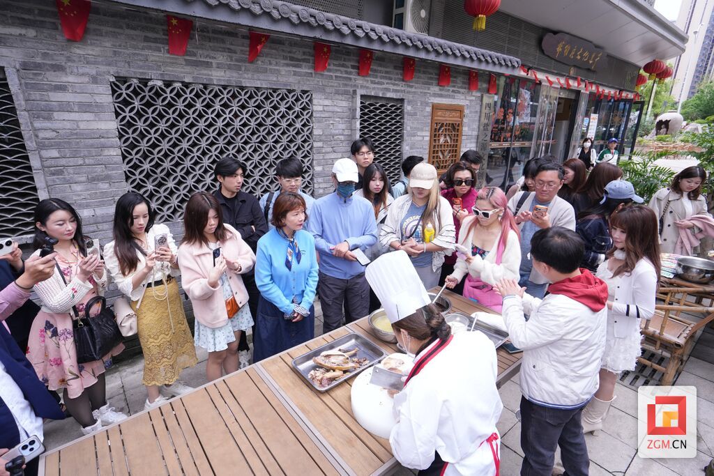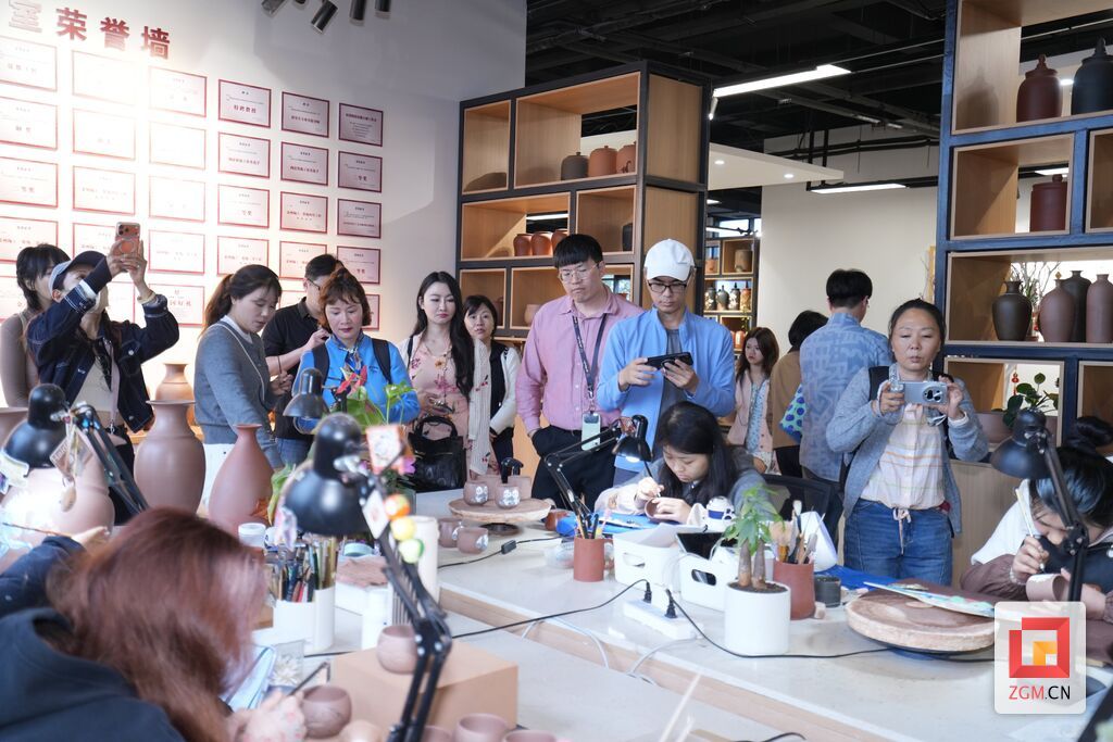 随后,交流团走进“荣州三绝”河西院子,品尝荣县麻辣鸡、羊肉汤等特色美食,地道风味让青年们赞不绝口。在荣县土陶创意园,大家观赏各类精美陶制展品,聆听土陶非遗技艺的历史渊源与传承故事,并在匠人指导下亲手为陶片上色,在指尖创作中感受传统工艺的匠心与魅力。