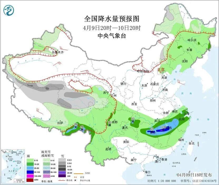 今明天(4月10日至11日),江南等地部分地区仍是降雨连连,湖南、江西等地部分地区有暴雨或大暴雨,需防范连续降雨和局地较强降雨可能引发的次生灾害。随着阴雨增多,江南一带今天气温下降,华南炎热天气仍将持续,部分地区有高温天气,北方气温多起伏,公众请适时调整着装。