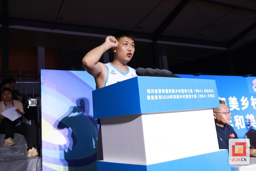 开幕式上,运动员代表、裁判员代表分别进行庄严宣誓。伴随着哨声响起,贡井队与威远队展开精彩友谊赛,正式拉开2026年全省乡村篮球赛季的序幕。