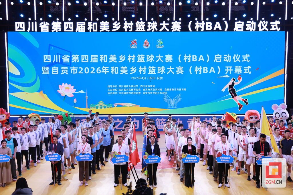 4月10日,四川省第四届和美乡村篮球大赛(村BA)启动仪式暨自贡市2026年和美乡村篮球大赛(村BA)开幕式在自贡市贡井区建设镇重滩村体育公园隆重举行。